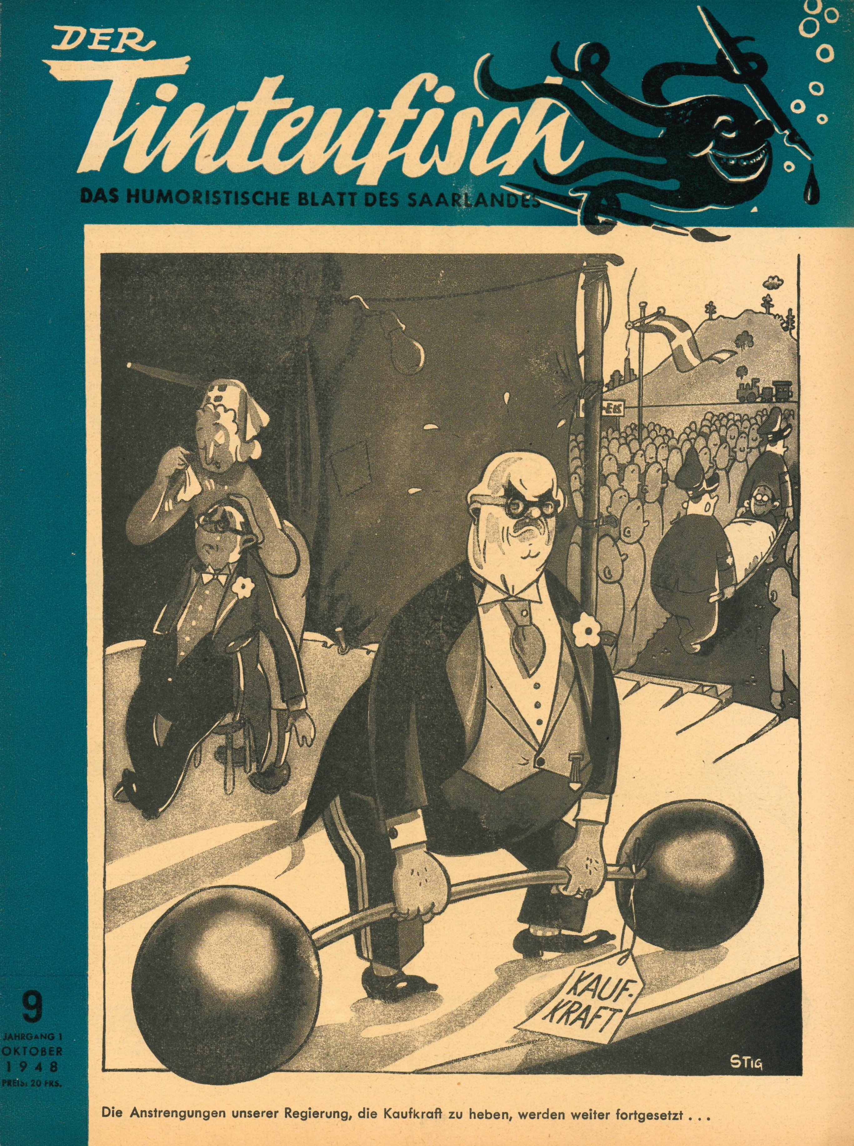 Ab 1947 steuerte Roland Stigulinszky Illustrationen, Bildergeschichten und Titelbilder für die Kinderzeitung Kinderpost bei, ein Jahr später begann er zudem für die Satire-Zeitschrift Tintenfisch tätig zu werden; in der Kabinettausstellung sind die entsprechenden Originalveröffentlichungen zu sehen. Zu diesem Zeitpunkt lag das Ende des Zweiten Weltkrieges noch nicht lange zurück. Roland Stigulinszky war 1947 aus sowjetischer Kriegsgefangenschaft nach Saarbrücken zurückgekehrt und begann sich nun durch seine Pressezeichnungen rasch einen Namen zu machen, und dies nicht nur im Saarland: Für die in Köln erscheinende Zeitschrift Neue Illustrierte steuerte STIG von 1952 bis Anfang der 1960er Jahre humorvolle Cartoons bei – originale Zeichnungen aus dieser Zeit werden in der Ausstellung präsentiert. Ferner ist eine Auswahl von STIGs politischen Karikaturen zu sehen, die in den 1960er Jahren in der Saarbrücker Zeitung veröffentlicht wurden.