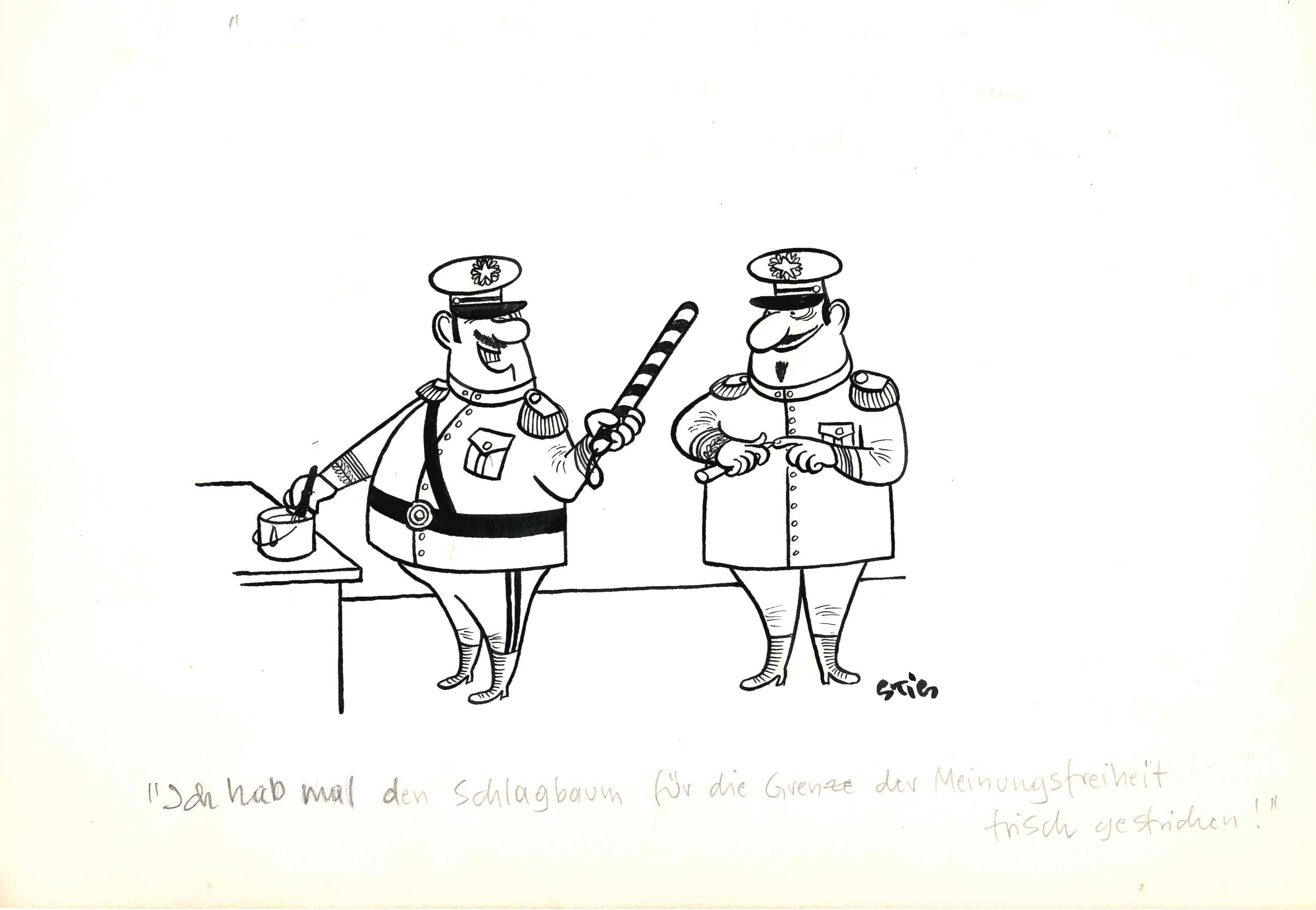 Als STIG – mit dieser Abkürzung signierte Roland Stigulinszky seine Zeichnungen – im Jahr 2022 im Alter von 95 Jahren starb, hinterließ er einen umfangreichen Nachlass, von dem ein Teil in die Sammlung des Deutschen Zeitungsmuseums überging. In dieser Sonderpräsentation wird eine Auswahl seiner frühen Werke für die Presse gezeigt, um auf diese Weise die Anfänge von STIGs kreativer Arbeit zu dokumentieren: Ausgestellt werden sowohl Zeitungen und Zeitschriften als auch originale Zeichnungen.